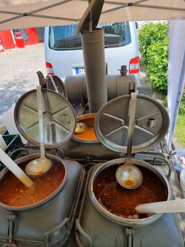 Eine Feldküche ist eine mobile Küche, die oft bei Veranstaltungen im Freien oder bei besonderen Anlässen eingesetzt wird. Sie ermöglicht es, frisch zubereitete Mahlzeiten direkt vor Ort zu kochen und den Gästen anzubieten. Das ist besonders praktisch, wenn man ein besonderes kulinarisches Erlebnis im Freien schaffen möchte. Die Feldküche sorgt also für frische, warme Speisen und trägt zu einer angenehmen Atmosphäre bei, in der die Gäste das Essen direkt vor Ort genießen können. Wenn du möchtest, kann ich dir auch noch mehr Details dazu geben!